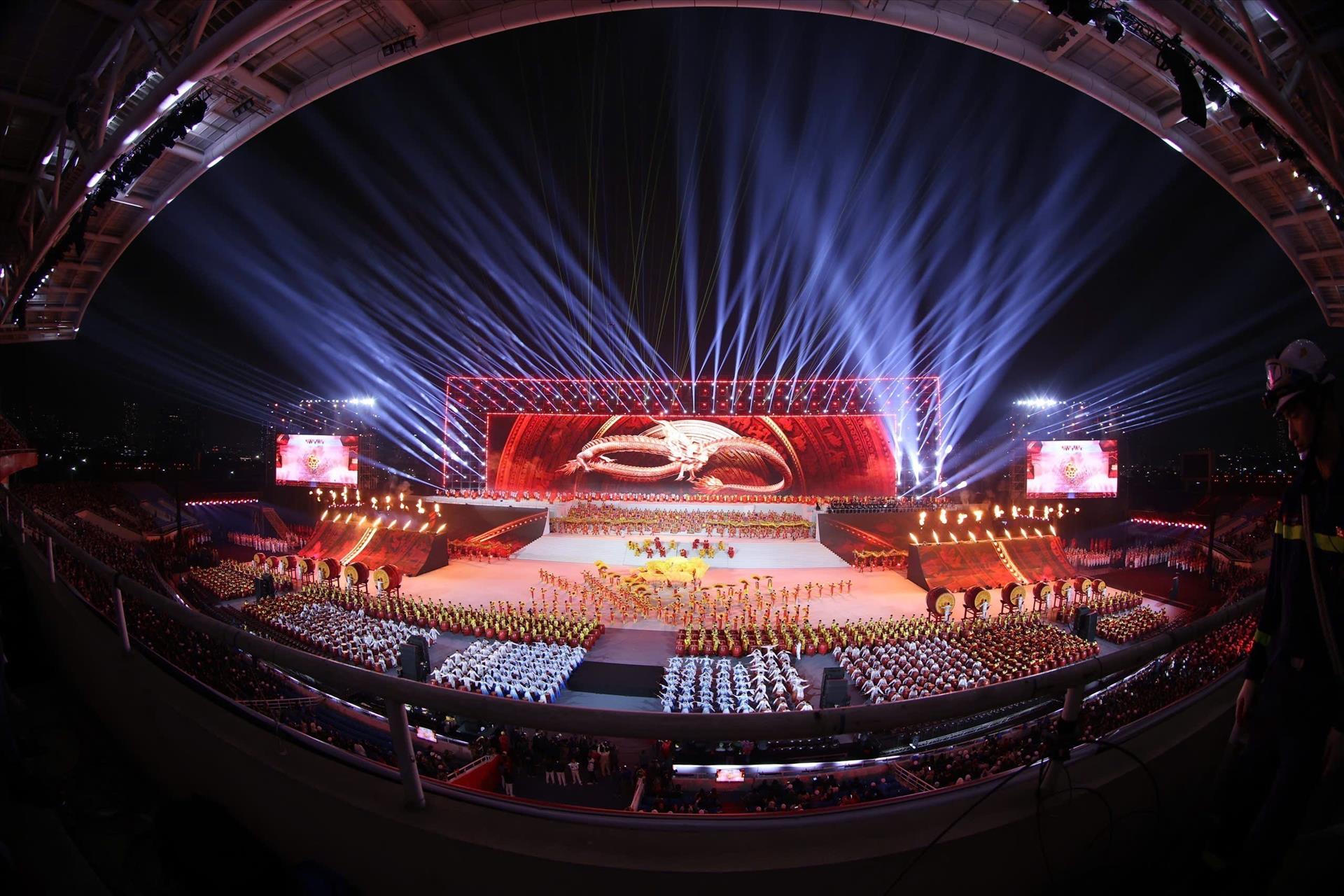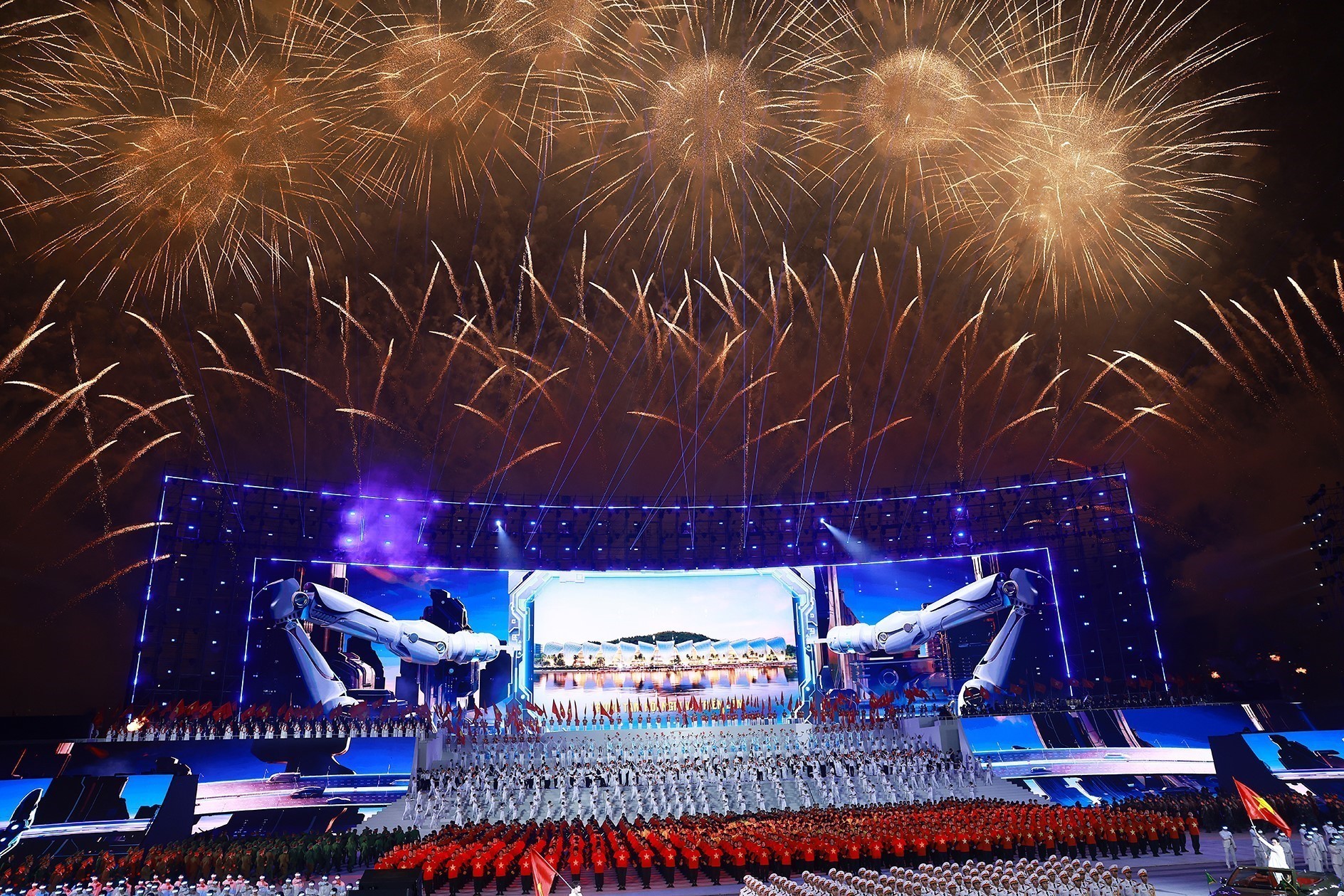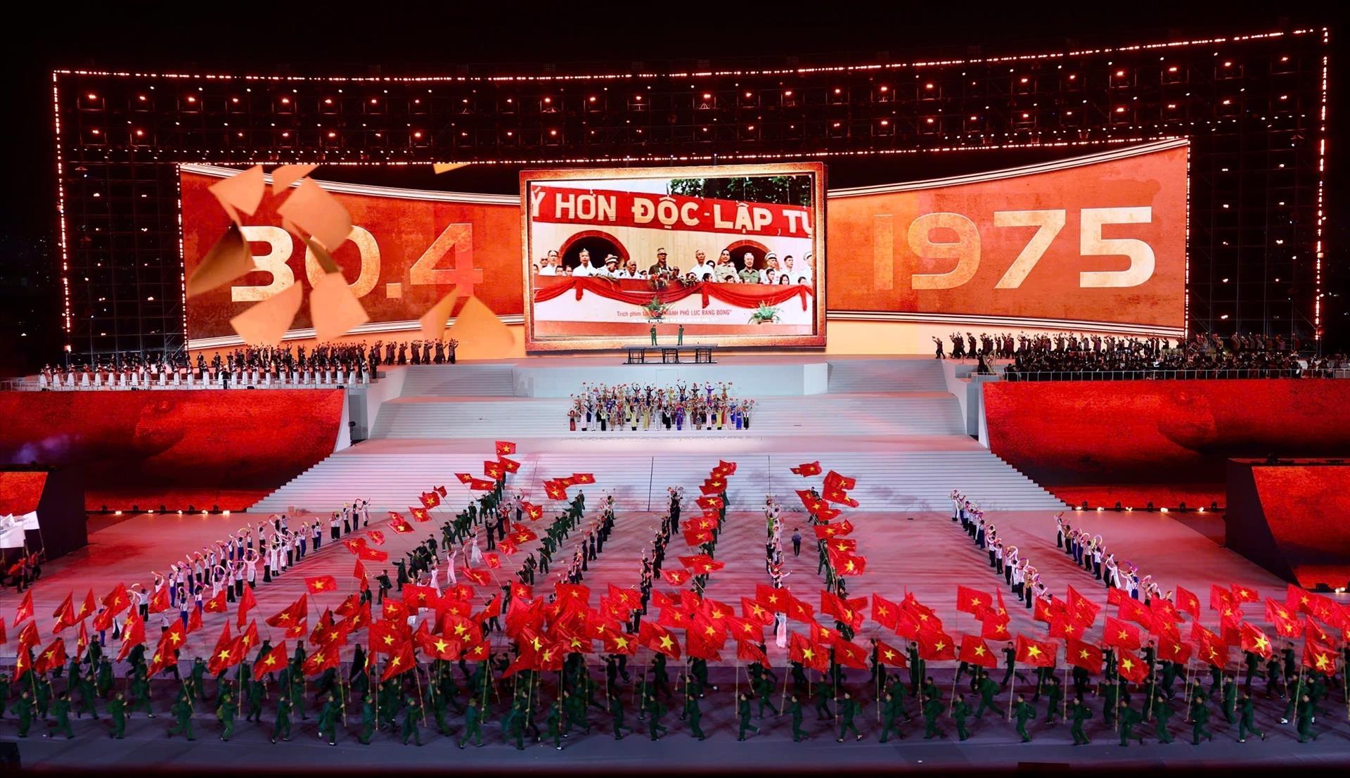 Le programme artistique spécial « Sous le glorieux drapeau du Parti », d’une durée de 120 minutes, avec trois tableaux thématiques et un feu d’artifice final. Photo : VNA