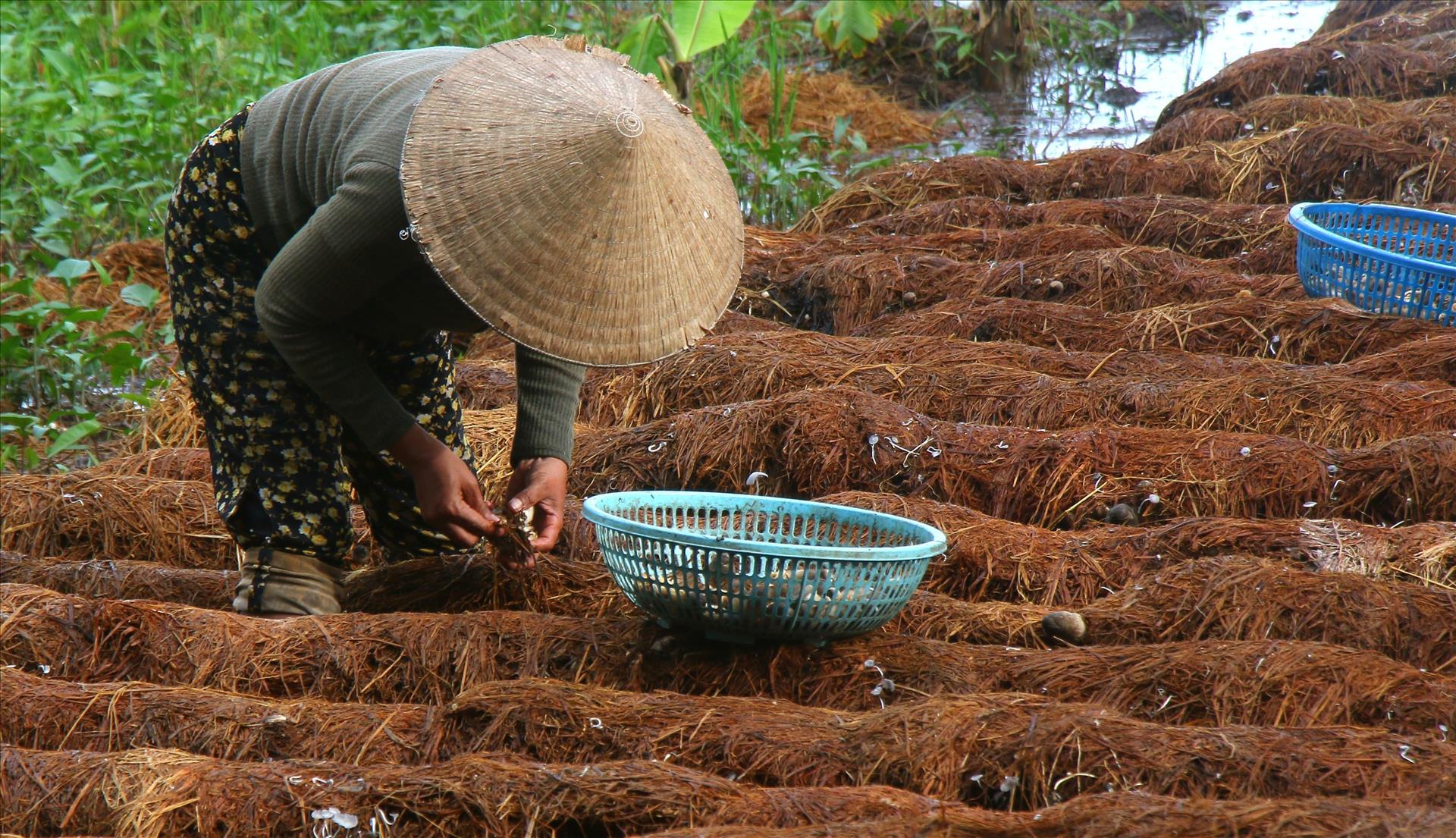 Dans la commune de Xa Phien, à Can Tho, des agriculteurs réutilisent la paille de riz après la récolte pour cultiver des champignons. Photo : Duy Khuong – VNA