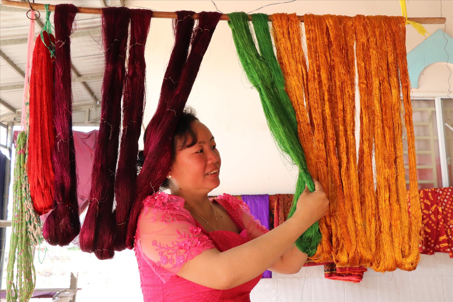 Les visiteurs découvrent le processus de fabrication, participent à la teinture et au tissage, et s’immergent dans les coutumes et le quotidien des Khmers. Photo: VNA