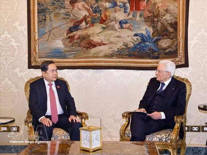 Lors de la rencontre, le président de l’Assemblée nationale Tran Thanh Man a transmis les salutations du secrétaire général du Parti communiste du Vietnam et président de la République, Tô Lâm, à président italien, Sergio Mattarella, tout en félicitant l’Italie pour les réalisations importantes obtenues sous la direction du président Sergio Mattarella. Il a souligné que, malgré la distance géographique, le Vietnam et l’Italie partagent de nombreuses similitudes profondes en matière de culture et d’histoire de lutte pour l’indépendance, constituant ainsi des bases solides pour renforcer davantage le partenariat stratégique Vietnam-Italie et envisager son élargissement à un niveau supérieur dans les temps à venir.
