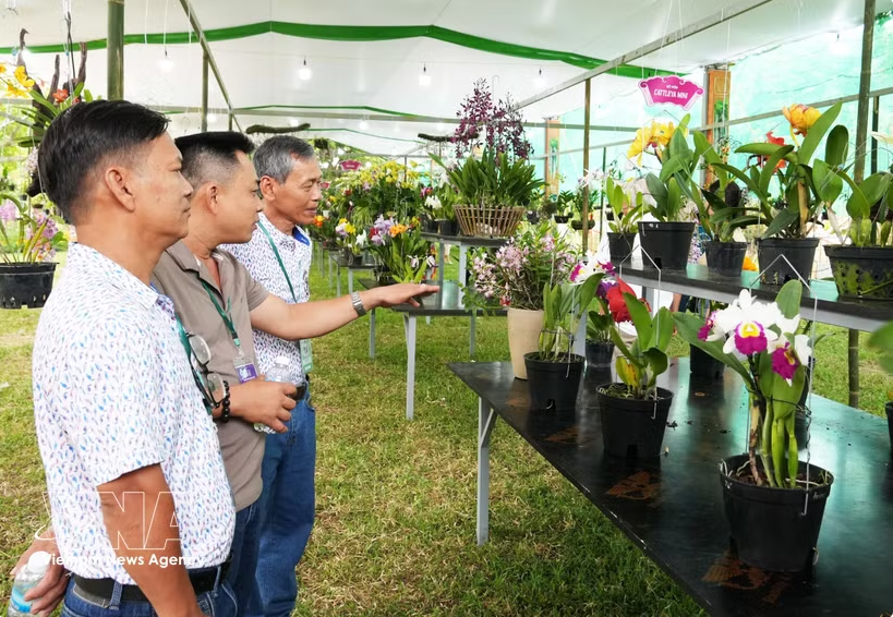 Exposition et une présentation de fleurs d’orchidées, de bonsaïs et de pierres ornementales provenant des trois régions du pays. Photo: VNA