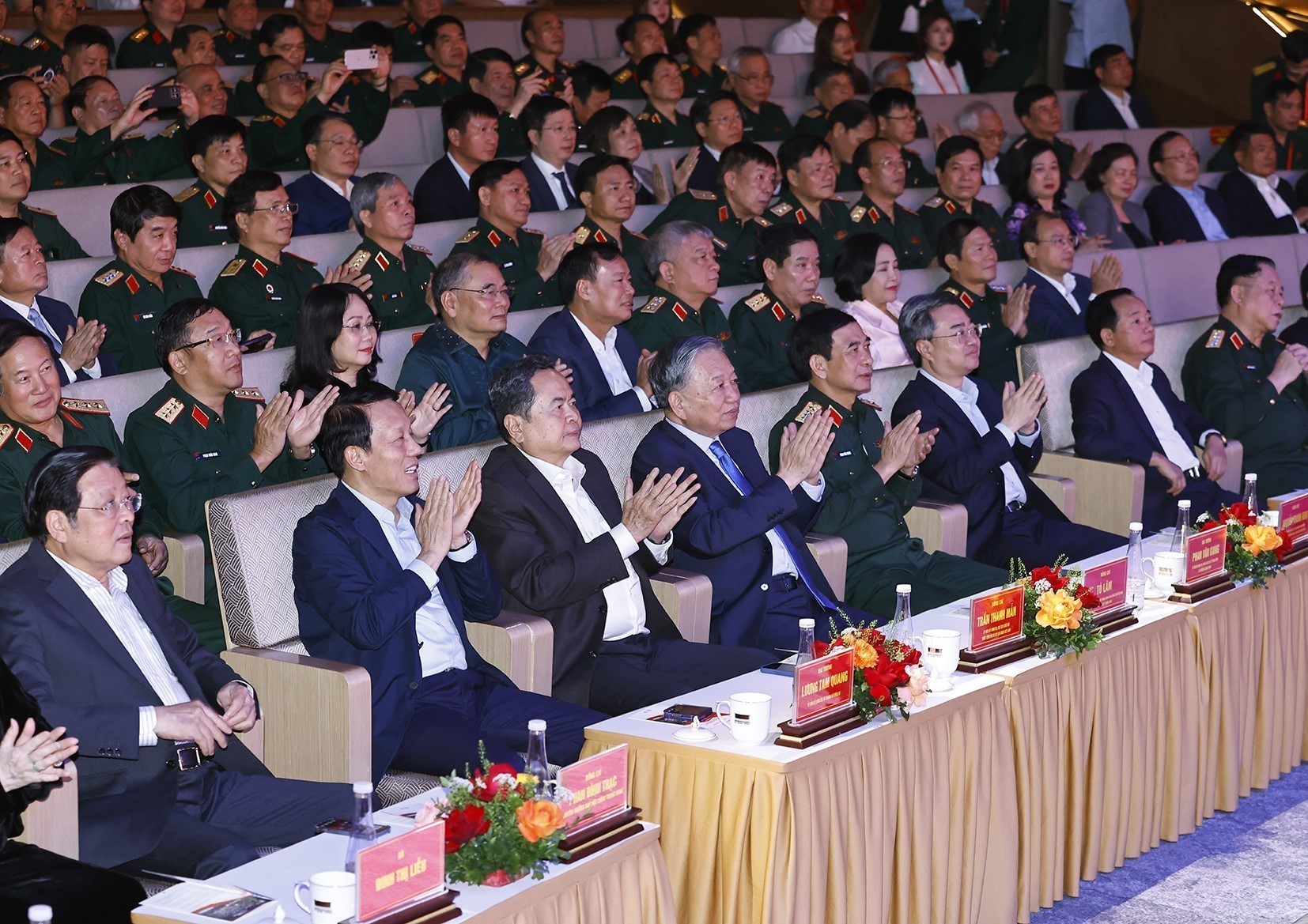 Le secrétaire général du Parti, To Lam, également secrétaire de la Commission militaire centrale, Tran Thanh Man, membre du Bureau politique et président de l’Assemblée nationale, et d'autres dirigeants, lors du concert. Photo: VNA