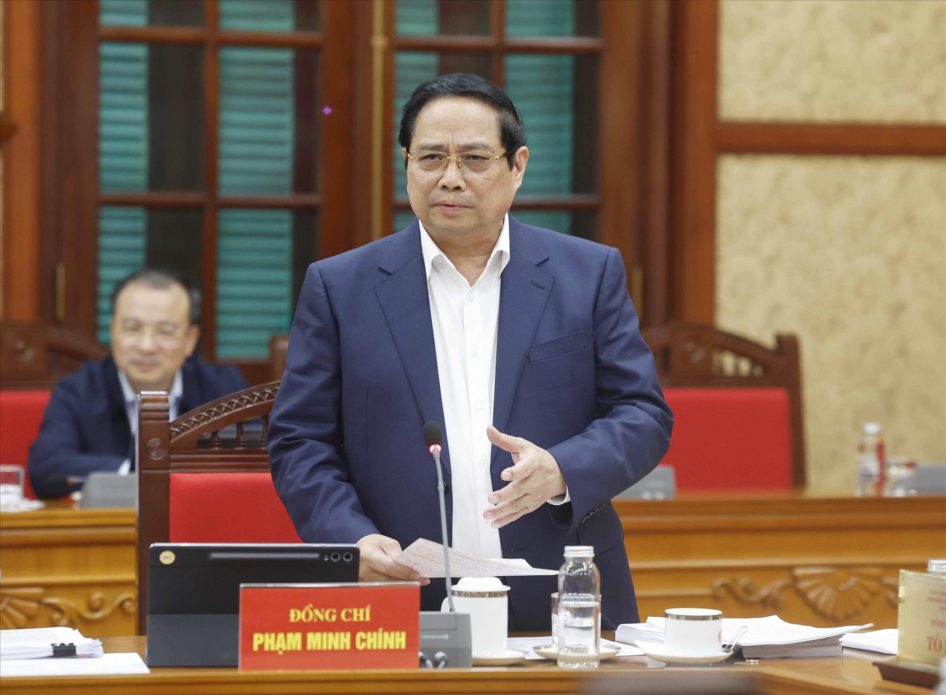 Le Premier ministre Pham Minh Chinh, vice-président du Comité central de pilotage pour le perfectionnement des institutions et des lois, prend la parole lors de l'événement. Photo : VNA