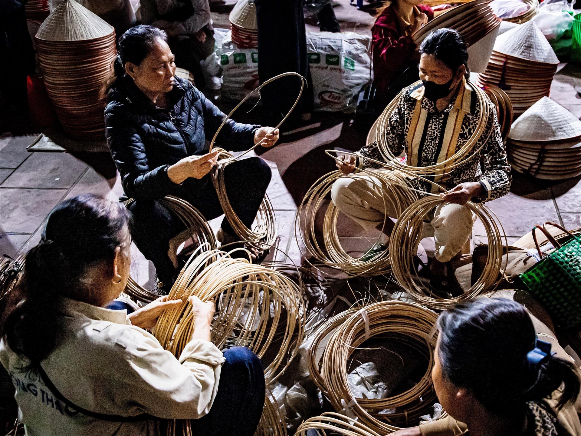 Dès 4h30 du matin, sous une lumière tamisée, le marché aux chapeaux coniques du village de Chuông, en banlieu de Hanoï, s'anime déjà au rythme des rires et des voix. Ce marché éphémère, qui ne dure environ que trois heures, se tient les 4e, 10e, 14e, 20e, 24e et 30e de chaque mois lunaire, contribuant à la survie d'un village artisanal tricentenaire.