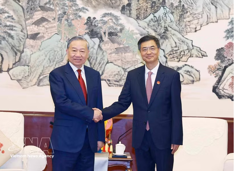 Dans le cadre de sa visite d’État en Chine, le secrétaire général du Parti communiste du Vietnam (PCV) et président vietnamien, To Lam, a reçu, le soir du 16 avril, à Nanning, dans la région autonome Zhuang du Guangxi (Chine), Chen Gang, membre du Comité central du Parti communiste chinois, secrétaire du Comité du Parti et président du Comité permanent de l’Assemblée populaire de cette région chinoise.