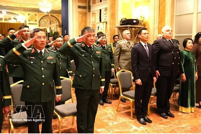 L’événement a eu lieu en présence du général de corps d’armée Nguyen Van Hien, membre du Comité central du Parti et vice-ministre de la Défense, du vice-ministre des Affaires étrangères Dang Hoang Giang, de l’ambassadrice du Vietnam en Italie Nguyen Phuong Anh, du contre-amiral Gianandrea Buldrini, chef adjoint du renseignement et de la cybersécurité au sein du ministère italien de la Défense, ainsi que des attachés de défense des pays accrédités en Italie.