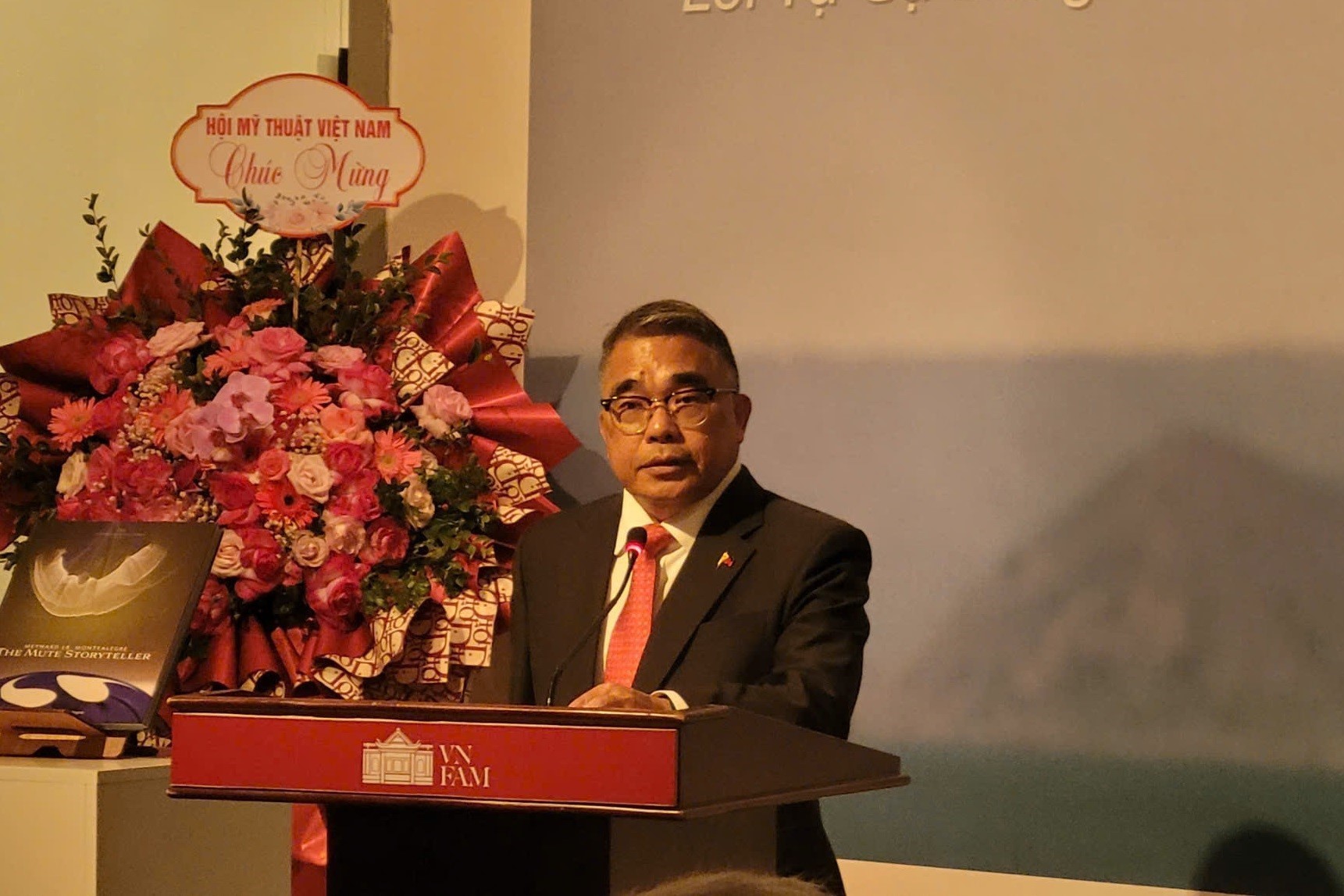 L'ambassadeur des Philippines, Meynardo Los Baños Montealegre prend la parole lors du lancement de l'exposition "Giao Thoa" à Hanoi. Photo: VNA