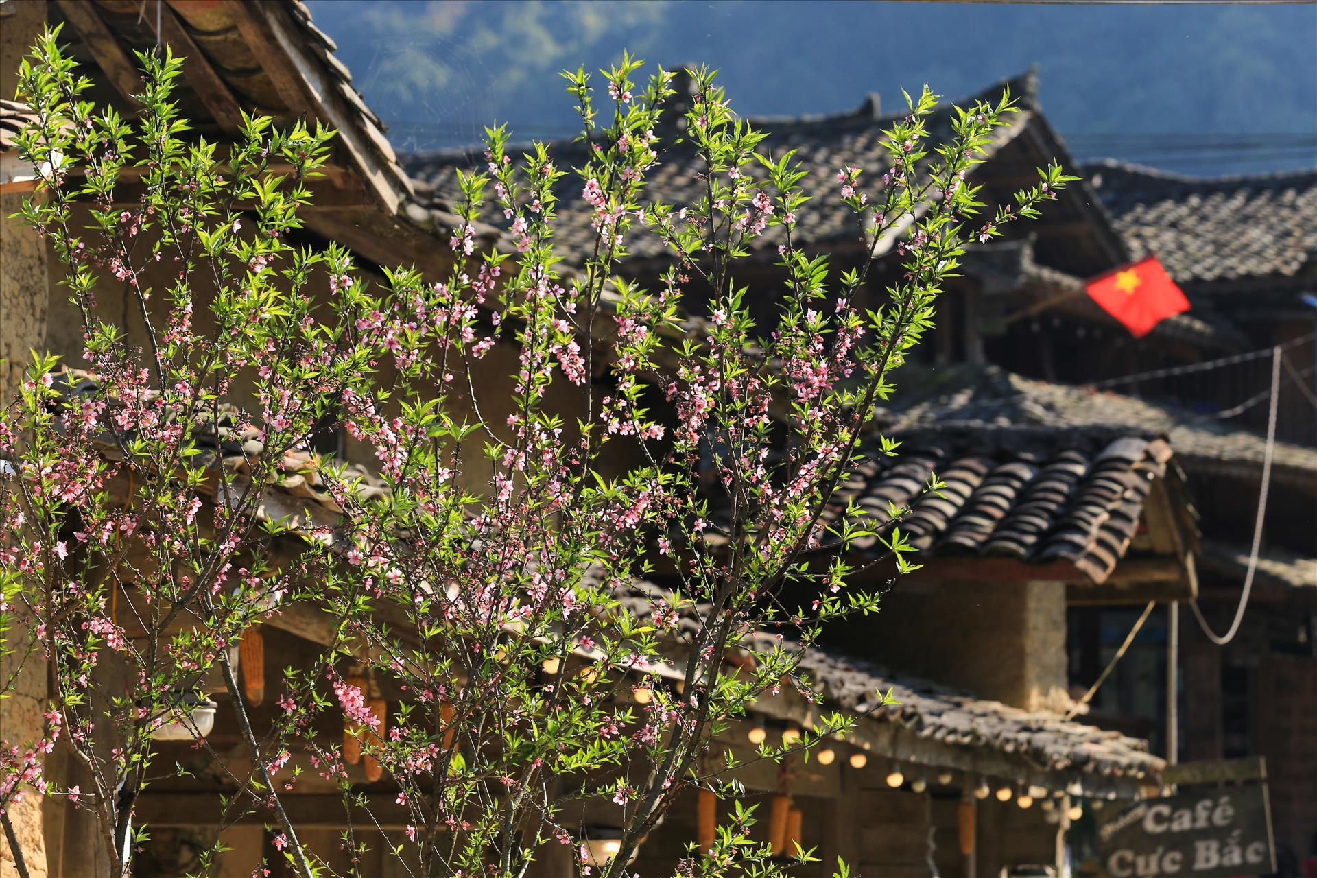 Fleurs de pêcher devant une maison traditionnelle « nhà trình tường » (maison aux murs en terre) des Lô Lô. Photo : Trân Hiêu/VI
