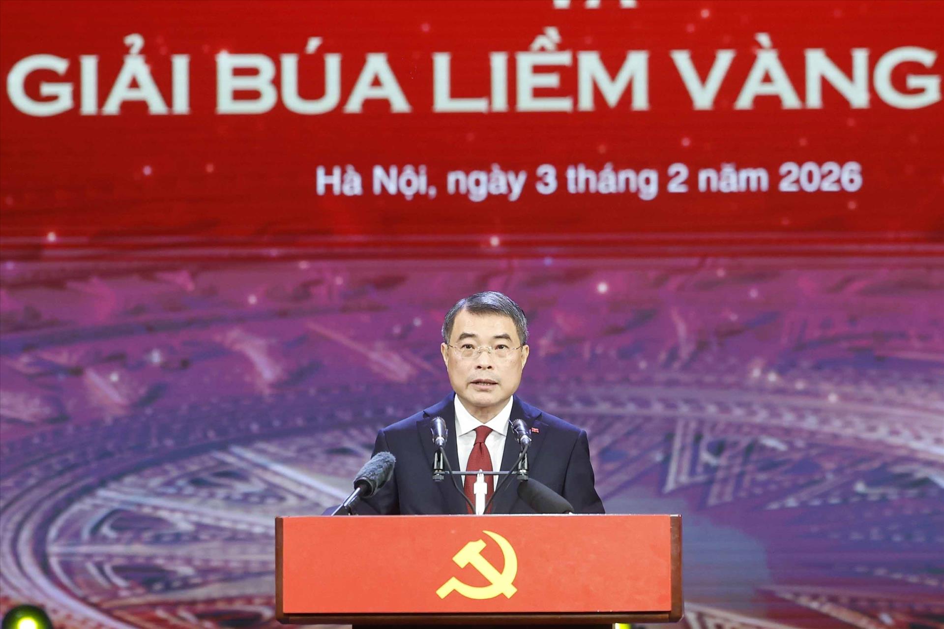 Lors de la cérémonie, Le Minh Hung, membre du Bureau politique, secrétaire du Comité central du Parti, chef de la Commission de l’organisation du Comité central et président du Comité directeur du Prix du Marteau et de la Faucille d’or, a lancé l’édition 2026 du Prix.