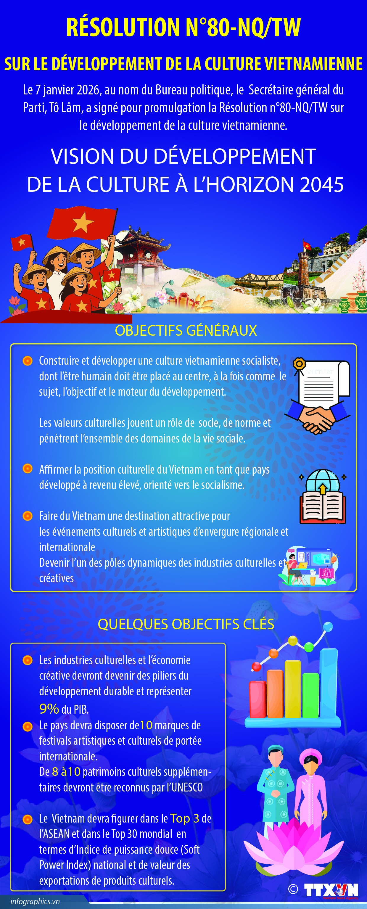 Le 7 janvier 2026, au nom du Bureau politique, le Secrétaire général du Parti, Tô Lâm, a signé pour promulgation la Résolution n°80-NQ/TW sur le développement de la culture vietnamienne.