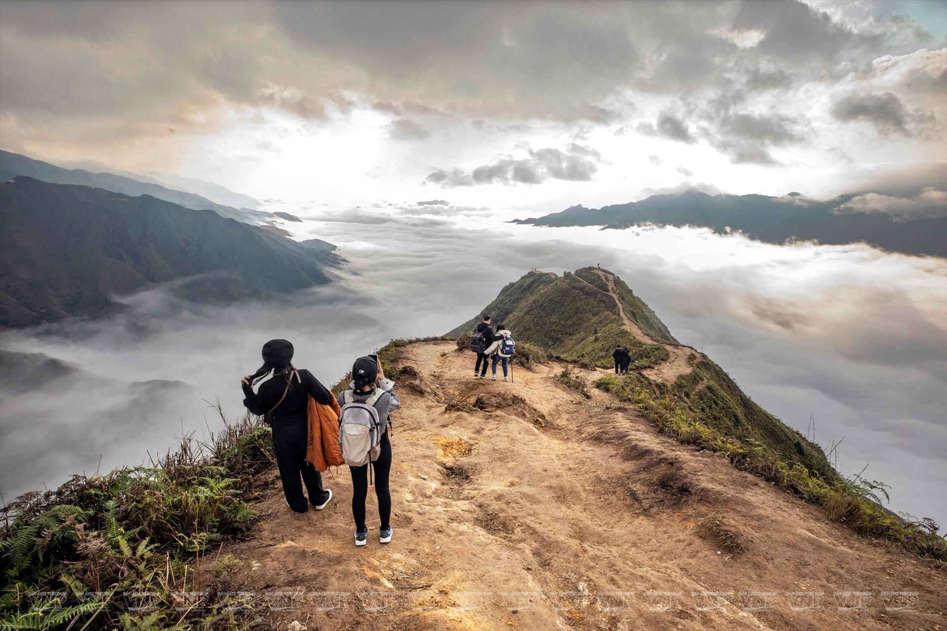Touristes marchant sur une crête de montagne. Photo: Tât Son/VI