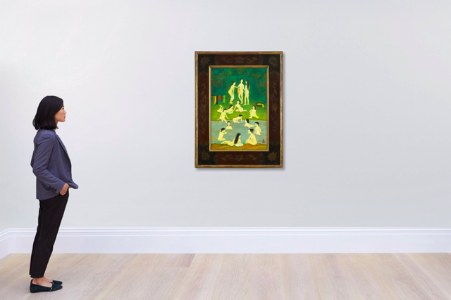 "Avec une maîtrise picturale affirmée, Mai Trung Thu explore l’un de ses thèmes de prédilection : le nu féminin et la vie quotidienne", a souligné Sotheby’s. "Alors que la plupart de ses œuvres se concentrent sur des compositions à une ou deux figures, +Le petit cours d’eau, la baignade+ représente jusqu’à 14 figures féminines, ce qui en fait l’une de ses compositions de groupe les plus complexes."