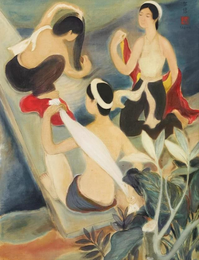 L’œuvre s’inspire des thèmes artistiques occidentaux du nu et des baigneuses, tout en représentant de jeunes femmes se baignant au bord d’une rivière dans un cadre rural paisible, créant ainsi une scène poétique typiquement vietnamienne.