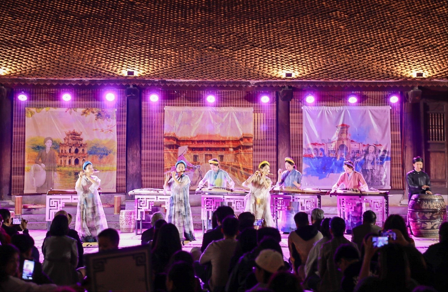 À travers la musique traditionnelle et les arts populaires, "Âm sac Viêt" a enrichi l’expérience du public et approfondi la compréhension des valeurs éducatives et culturelles du site. Les visiteurs ont été guidés à travers des espaces emblématiques tels que le pavillon Khuê Van Cac, le puits Thiên Quang et la cour de Bai Duong, magnifiés par un éclairage de lanternes traditionnelles.