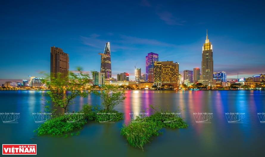 Hô Chi Minh-Ville est magnifique illuminée le soir, vue de la rivière Sai Gon. Photo: Giang Son Dông