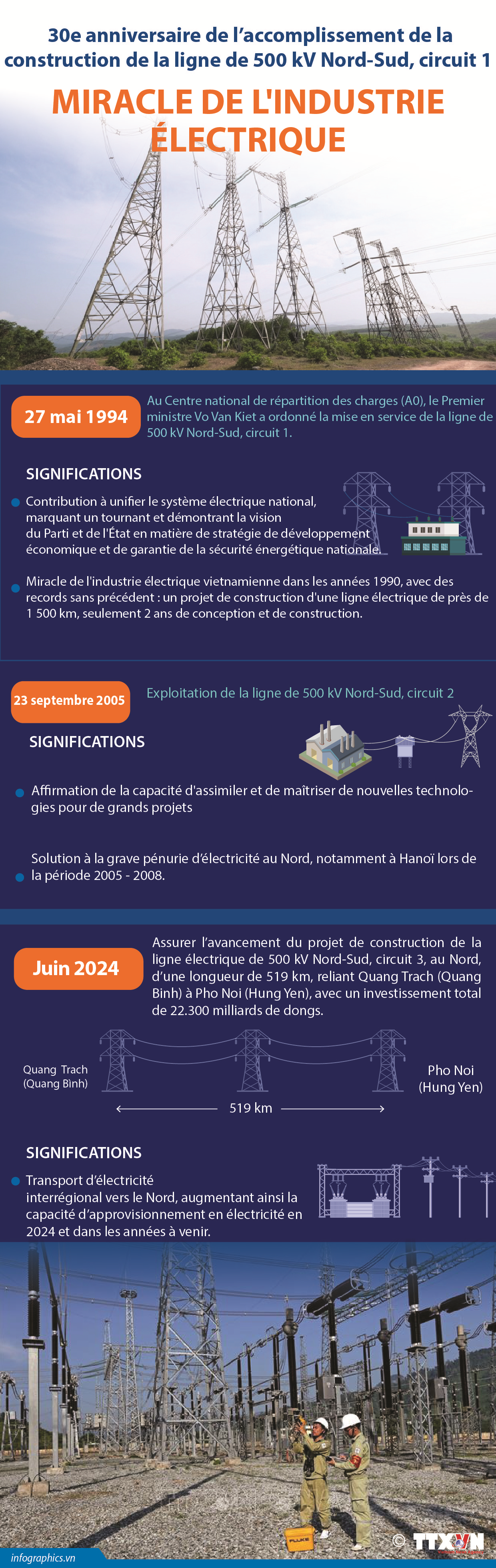 La ligne de 500 kV Nord-Sud, circuit 1, contribue à unifier le système électrique national, marquant un tournant et démontrant la vision du Parti et de l'État en matière de stratégie de développement économique et de garantie de la sécurité énergétique nationale.