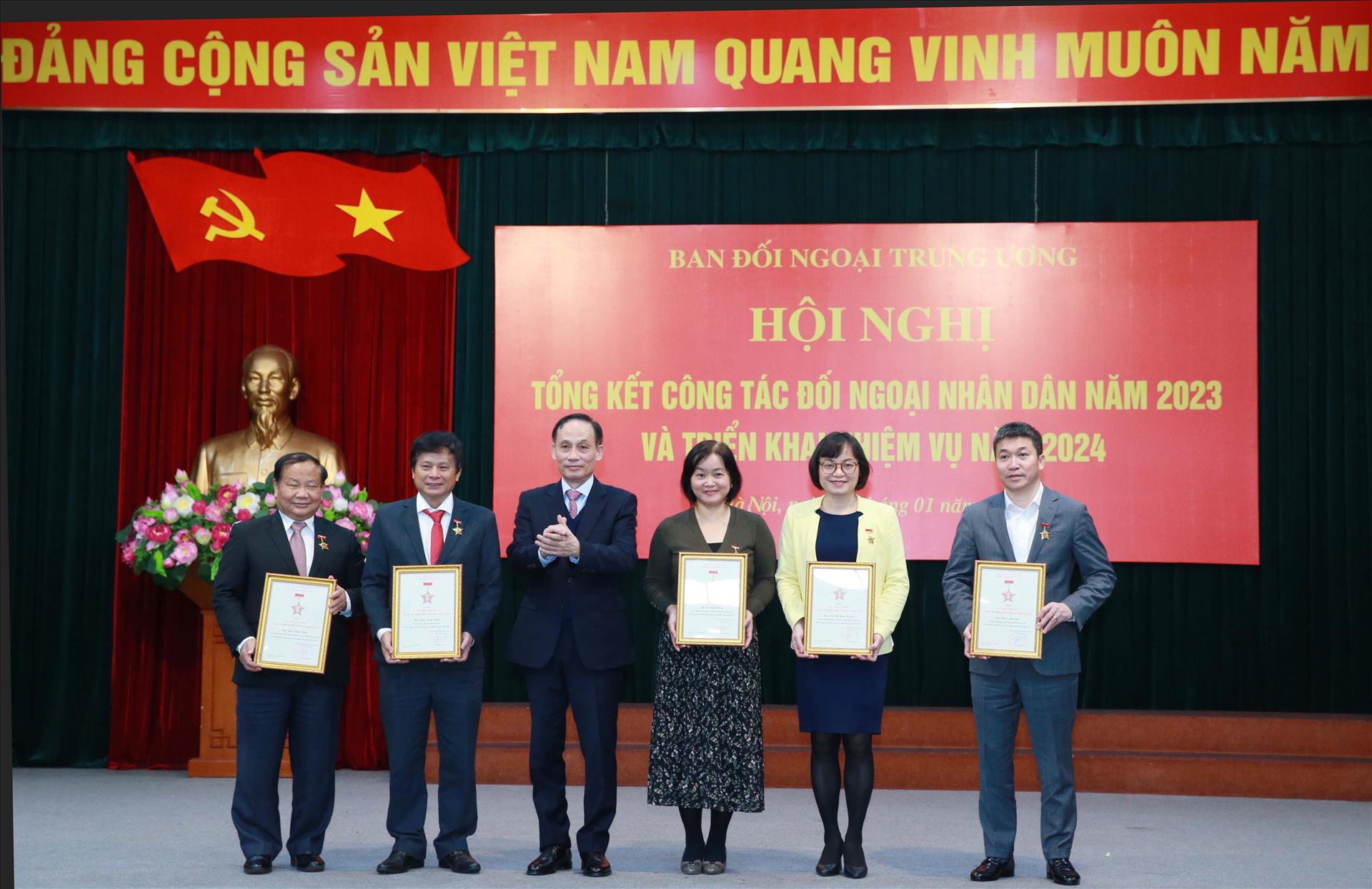 A cette occasion, Lê Hoài Trung a décerné l'insigne ‘Pour la diplomatie populaire’ aux collectifs et particuliers exemplaires de 2023.- VNA/VI