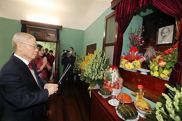 À l'occasion du Nouvel An du Dragon 2024, le secrétaire général du Parti Nguyen Phu Trong est allé offrir de l'encens le 7 février pour rendre hommage au Président Hô Chi Minh dans la maison 67 du site de la zone des vestiges du Président Hô Chi Minh au palais présidentiel.