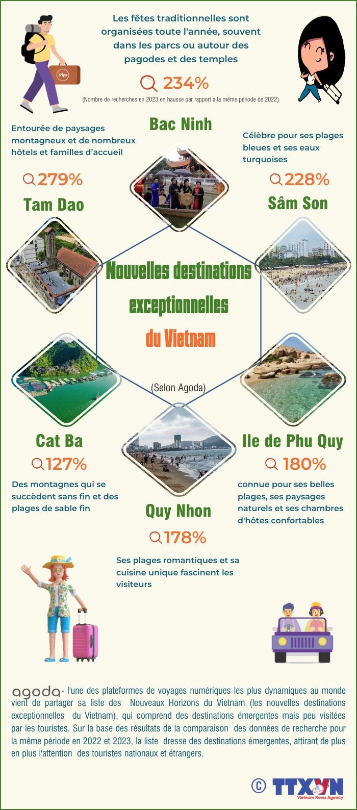 Agoda, l’une des plateformes de voyages numériques les plus dynamiques au monde vient de partager sa liste des nouvelles destinations exceptionnelles du Vietnam, qui comprend des destinations émergentes mais peu visitées par les touristes. Sur la base des résultats de la comparaison des données de recherche pour la même période en 2022 et 2023, la liste dresse des destinations émergentes, attirant de plus en plus l'attention des touristes nationaux et étrangers.