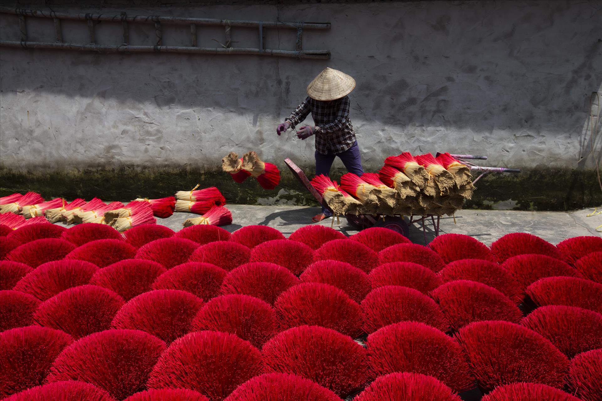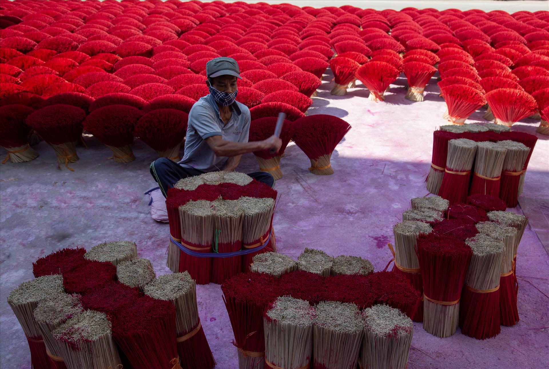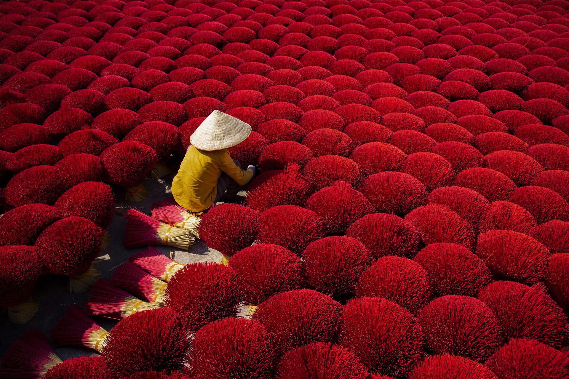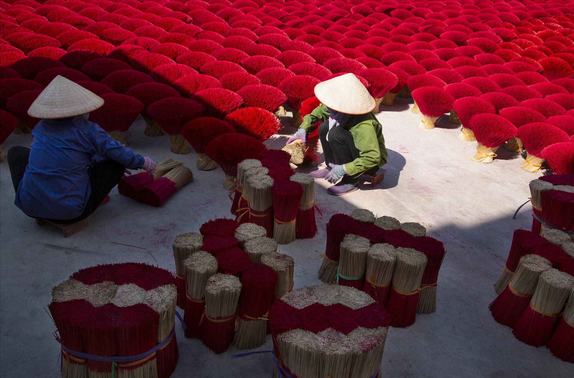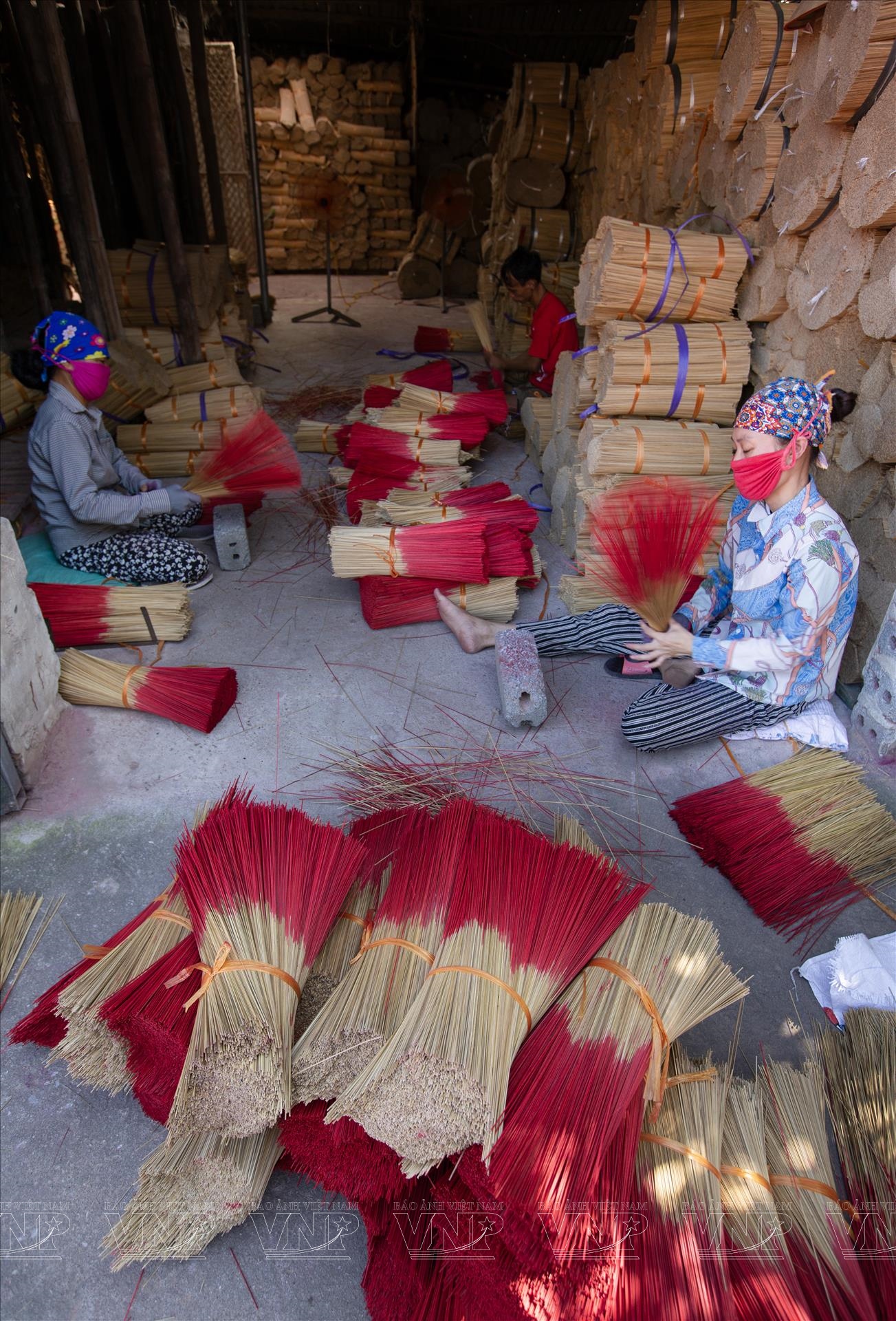 丙午の旧正月が近づくと、春が静かに北部の村々に訪れる中、クアンフーカウ村は一年で最も賑やかな時期を迎えます。村に足を踏み入れると、沈香、シナモン、八角のほのかな香りが辺りに広がります。テトが来て春が訪れる度に、ベトナムの人々の精神生活に深く結びついた、馴染み深い香りを感じることができます。その香りの奥には、100年以上続く線香作りの伝統を守りながら、首都の文化産業の発展と調和して歩み続ける村の魂が息づいています。