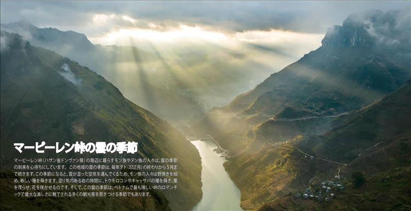 そして今回、縁があってか、私たちは夜明け前、鶏が鳴く頃にローローチャイの村から約40kmを急いで移動し、マーピーレン峠の頂上に到着しました。すると、雄壮な峠の地に幻想的な風景が広がっていたのです。雲がトゥーサン渓谷からニョクエ川に沿ってメオヴァック県の方へと流れ、まるで峠を横切る白い絹の帯のようでした。やがて雲が薄まり、太陽が昇ると、扇のように広がる陽光が雲を突き抜けて峠一面に差し込み、壮麗な景色を作り出しました。