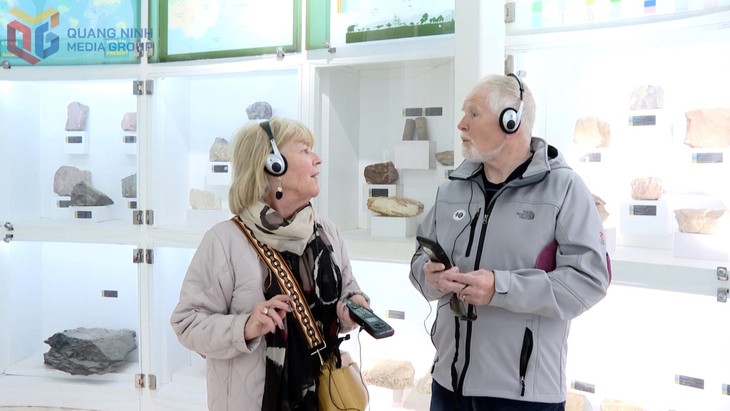 クアンニン博物館で自動音声ガイドを体験する外国人観光客(写真:baoquangninh.vn)