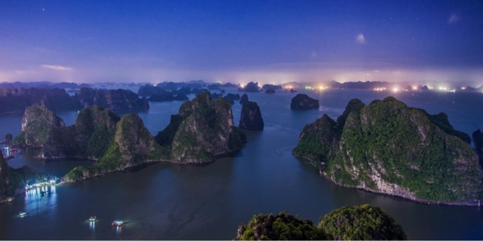 夜のハロン湾が灯りに照らされ、幻想的な景観で観光客を魅了(写真:Trường Giang/VOV-Đông Bắc)