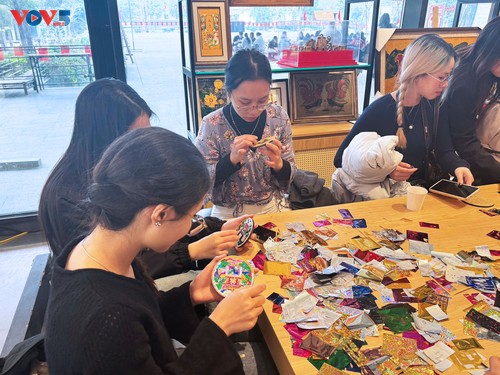 ハノイ博物館、午年の新春に無料開放 - ảnh 1 博物館1階で陶芸や絵画体験に参加する若者たち(写真:Thủy Tiên/VOV1)