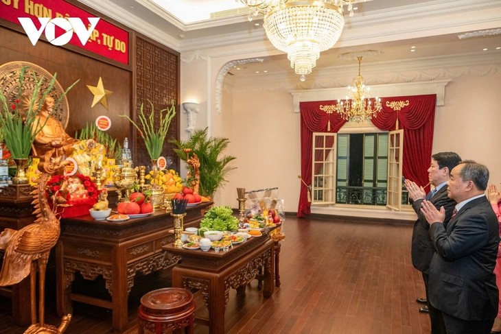 旧暦12月29日にあたる2月16日夜、年越しの時を前に、ルオン・クオン国家主席はハノイで、国家主席府内のホー・チ・ミン主席遺跡地区にある67号館と、レ・タイック通り2番地の旧北部政府庁舎を訪れ、ホー・チ・ミン主席に献香しました。