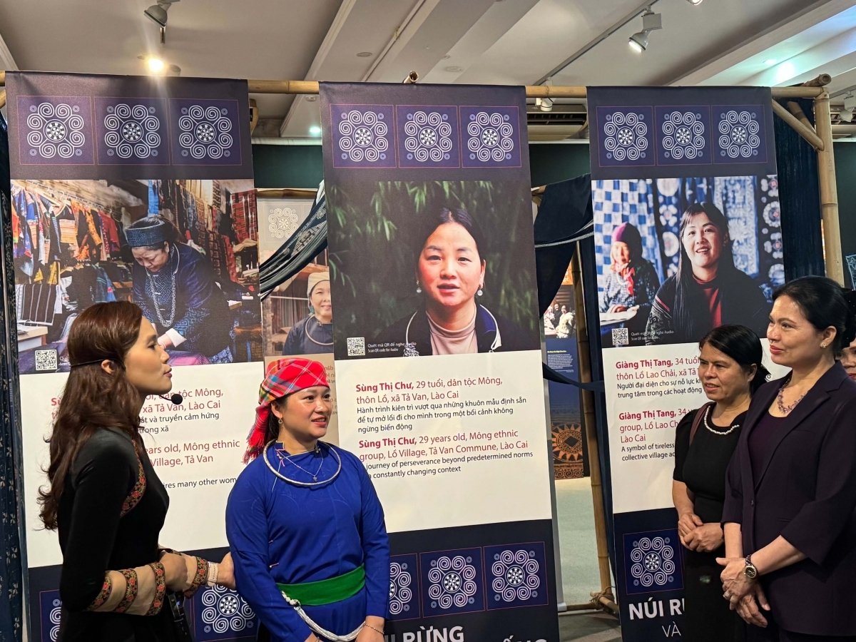 山岳地帯の女性たちによる自然・文化遺産保護の歩みは、ハノイ市内のベトナム女性博物館で、4月10日まで開催されている展示会「雲の頂に緑を蒔く」で鮮やかに再現されています。この展示会では、少数民族モン族、ザオ族、ザイ族、タイ族、タイー(Tay)族の女性たちの生活や、持続可能な生計を通じて新たな気象条件に適応しようとする彼女たちの懸命な姿が描かれています。