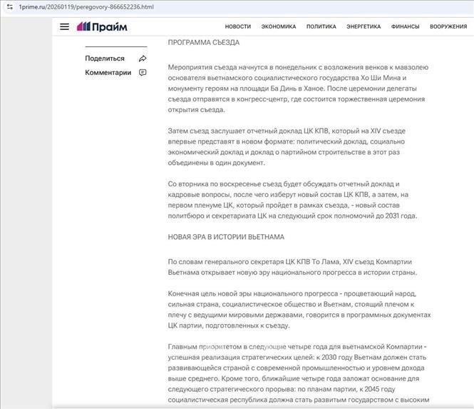 一方、分析サイト「ReporteAsia」は、キューバ・ベトナム友好協会副会長ルビスレイ・ゴンサレス・サエス博士の論考を掲載し、2030年および2045年に向けたビジョンは、経済成長と社会的公正、人間発展、長期的安定を結びつけたベトナムの持続可能な発展への強い意志を示していると評価しました。