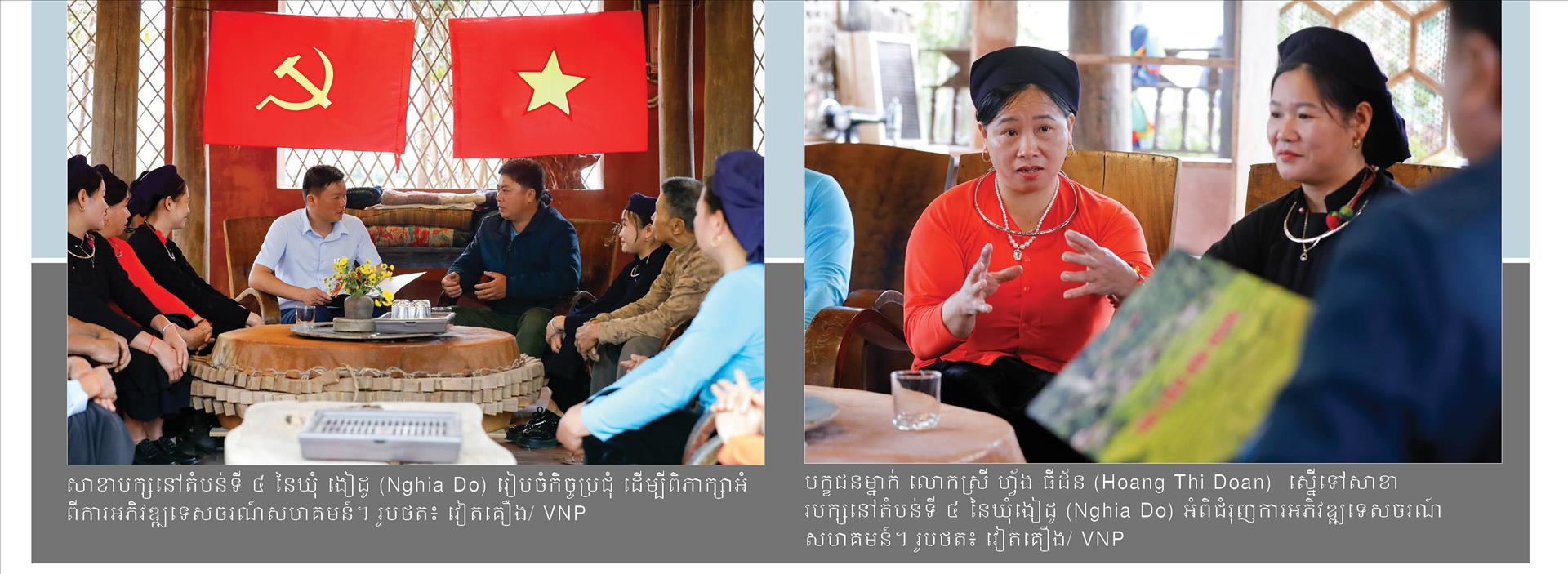 ស្មារតីនៃ «បក្ខជន​ដើរនាំមុខ  អ្នកស្រុកដើរតាម» ក៏ត្រូវបានបង្ហាញយ៉ាងច្បាស់នៅក្នុងការ​ជួបជុំរបស់សាខាបក្សផងដែរ។ យើងខ្ញុំបានអញ្ជើញឱ្យចូលរួមក្នុងកិច្ចប្រជុំរបស់សាខាបក្សភូមិ បានលៀន (Ban Lien)នៅមជ្ឈមណ្ឌលអភិរក្ស និងផ្លាស់ប្តូរវប្បធម៌ជនជាតិតៃ (Tay) ក្នុងឃុំ ងៀដូ (Nghia Do) ដែលជាស្ថាប័នវប្បធម៌មួយ ត្រូវបានបង្កើតឡើង ដែលជាលទ្ធផលនៃការអនុវត្តសេចក្តីសម្រេចលេខ ៣៣-NQ/TW នៃគណៈកម្មាធិការមជ្ឈិមបក្ស និតីកាលទី ១១  ស្តីពី "ការកសាង និងអភិវឌ្ឍវប្បធម៌ និងប្រជាជនវៀតណាម ដើម្បីឆ្លើយតបនឹងតម្រូវការនៃការអភិវឌ្ឍប្រទេសជាតិ ប្រកបដោយចីរភាព"។