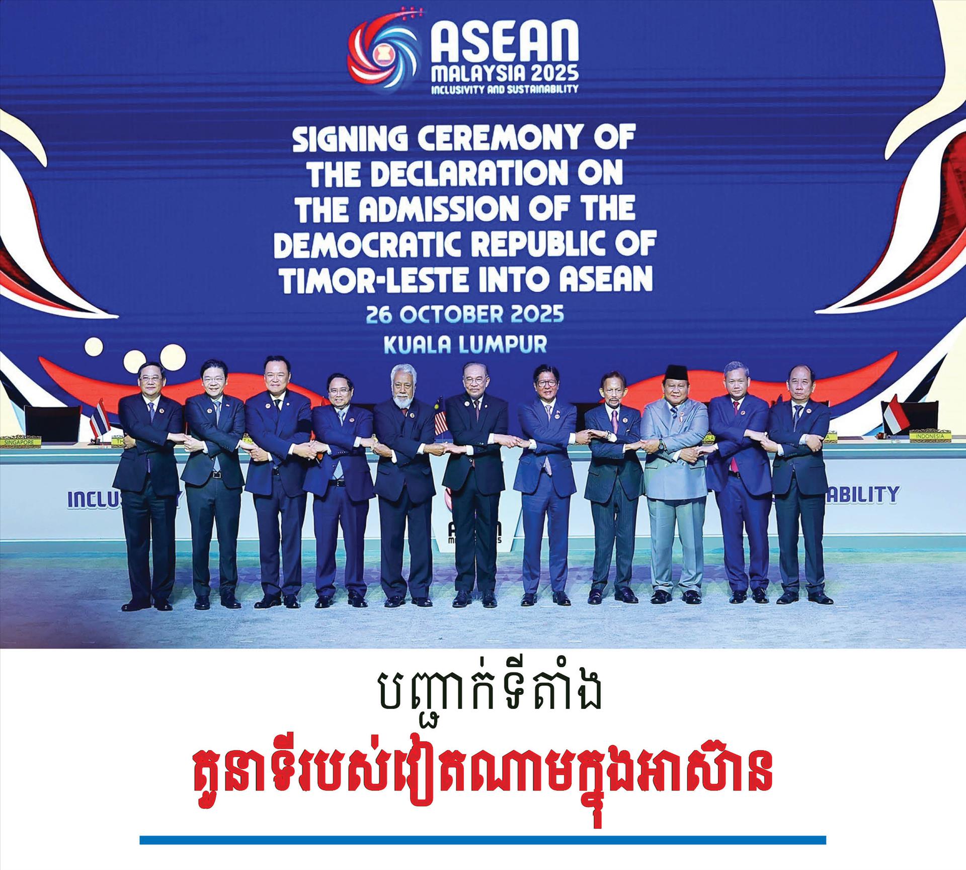 ចាប់ពីថ្ងៃទី២៦ ដល់ថ្ងៃទី២៨ ខែតុលា ឆ្នាំ២០២៥ លោក​នាយករដ្ឋមន្ត្រី ផាម មិញជិញ (Pham Minh Chinh) បាន​ដឹក​នាំ​គណៈប្រតិភូជាន់ខ្ពស់វៀតណាម អញ្ជើញចូល​រួម​កិ​ច្ច​ប្រ​ជុំ​កំ​ពូ​ល​អា​ស៊ា​ន​លើ​កទី​ ៤៧ និងកិច្ចប្រជុំពាក់ព័ន្ធ នៅទីក្រុងកូឡាឡាំពួរ ប្រទេស​ម៉ាឡេស៊ី តបតាមការអញ្ជើញ របស់លោកនាយករដ្ឋមន្ត្រី Anwar Ibrahim។ ជាមួយនឹងស​ក​ម្ម​ភា​ពមានលទ្ធល​ជា​ច្រើ​ន ដំណើ​រ​ទ​ស្សន​កិច្ច​​បាន​បង្ហា​ញពី​សារ​ដ៏​រឹង​មាំ​មួ​យ​អំពី ​​វៀត​ណាមមានភាពម្ចាស់ការ ច្នៃប្រតិដ្ឋ និងទទួល​ខុសត្រូវ រួមជាមួយប្រទេសជាសមាជិក ដើម្បី​កសា​ង​ស​ហ​គ​ម​ន៍​អា​ស៊ា​ន​​សាមគ្គីភាព ស្ថិរភាព ខ្លួនទីពឹងខ្លួន​  និងអភិវឌ្ឍប្រ​ក​បដោ​យ​ចី​រ​ភា​ព​។