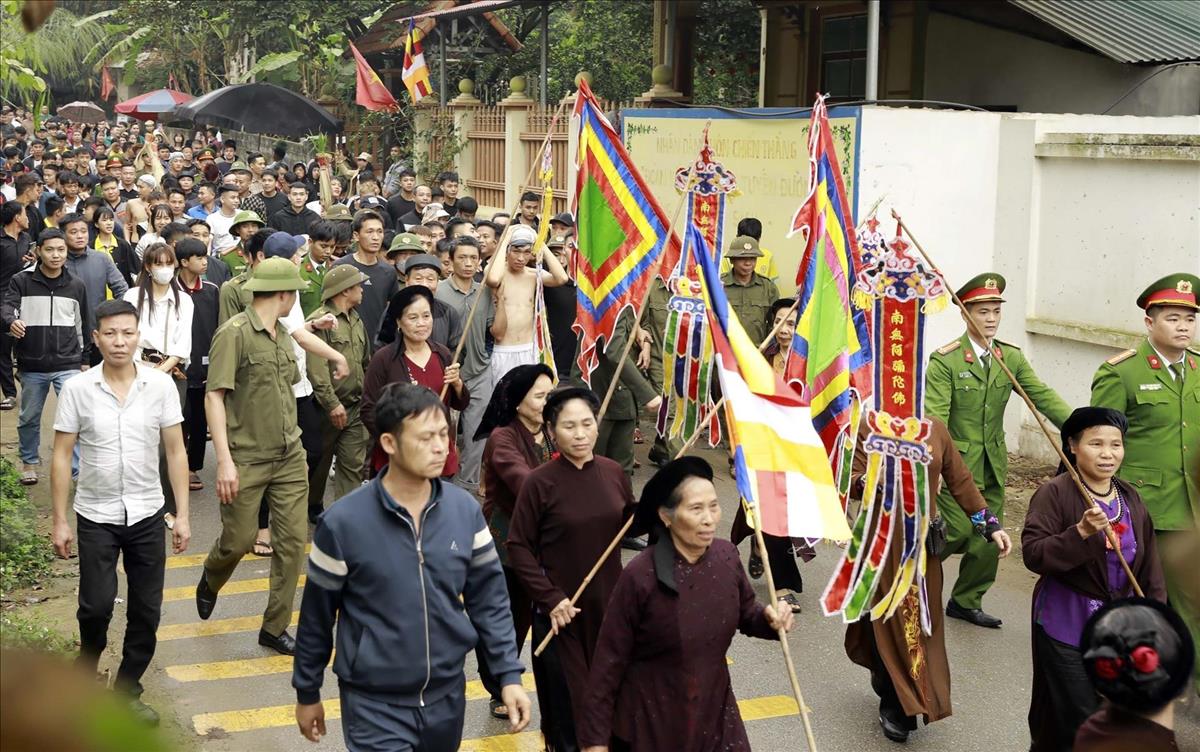 នេះគឺជាសកម្មភាពវប្បធម៌ប្រជាប្រិយមានពីយូរណាស់មកហើយ ជាប់ទាក់ទងនឹងរឿងព្រេងព្រះរាជបុត្រី ង៉ុកគិញ - មេទ័ពនារីដ៏មានទេពកោសល្យក្នុងសម័យ ហាយ បា ទ្រឹង។ បង្កើតឡើងវិញនូវស្មារតីនៃការកេណ្ឌ​ទ័ពចម្បាំងពលិកម្មជីវិត លត់ដំអាវុធ អបរំឆន្ទៈដ៏មុតមាំដើម្បីប្រយុទ្ធប្រឆាំងនឹងការឈ្លានពានពីបរទេស។