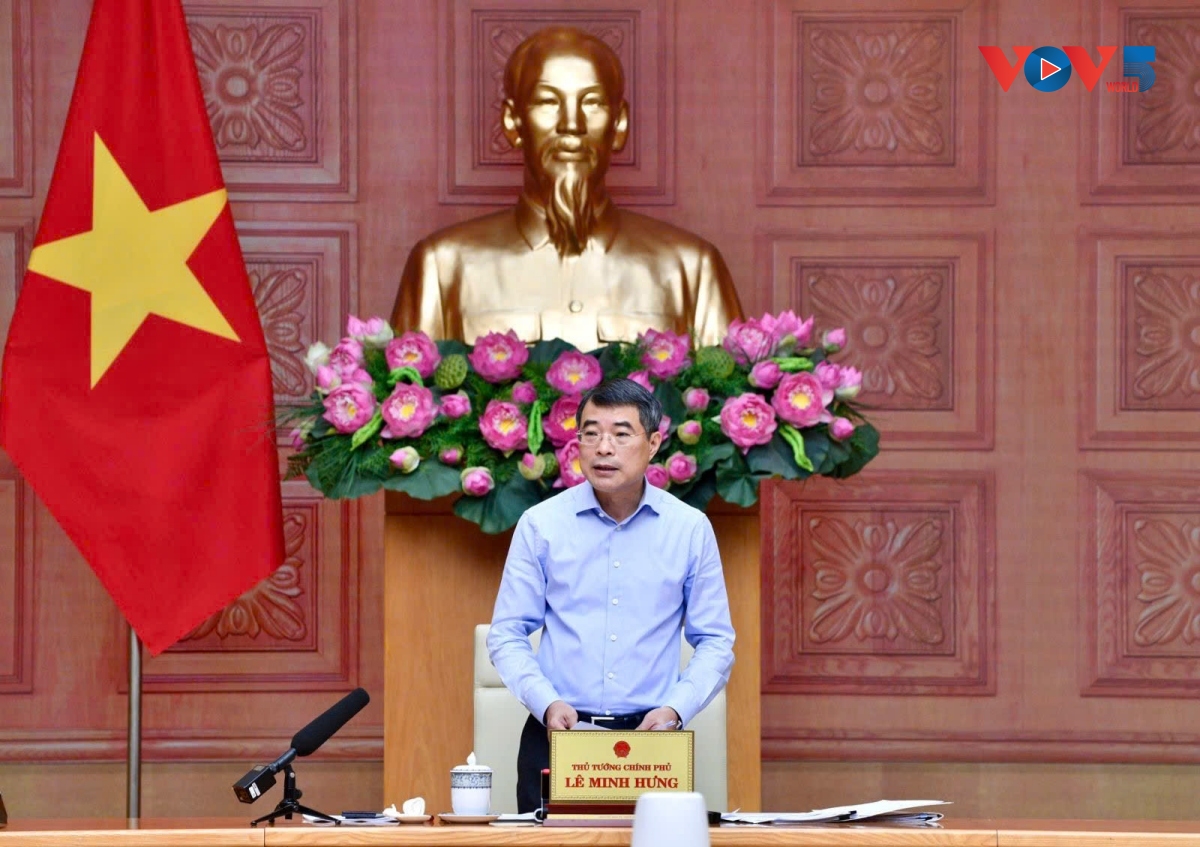 លោកនាយករដ្ឋមន្ត្រី ឡេ មិញហ៊ឹង ថ្លែងនៅក្នុងជំនួបធ្វើការ។ (រូបថត៖ Lại Hoa/VOV)