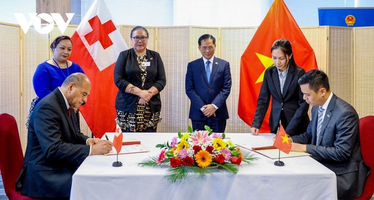 ពិធីចុះហត្ថលេខាលើកិច្ចព្រមព្រៀងបង្កើតទំនាក់ទំនងការទូតរវាងវៀតណាម និងតុងហ្គា។ រូបថត៖ VOV