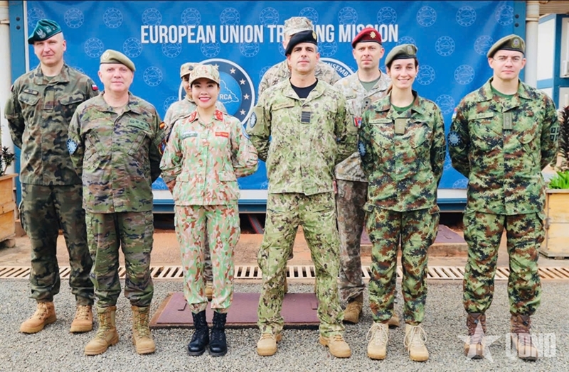 លោកស្រីវរសេនីយ៍ឯកបំរុង Vu Thi Lien និងសហការីអន្តរជាតិនៅ EUTM RCA ឆ្នាំ ២០២៤។ រូបថត៖ កាសែតកងទ័ពប្រជាជន