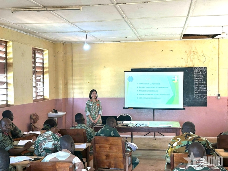 លោកស្រីវរសេនីយ៍ឯកបំរុង Vu Thi Lien ធ្វើការនៅសាធារណរដ្ឋអាហ្វ្រិកកណ្តាលឆ្នាំ ២០២៤។ រូបថត៖ កាសែតកងទ័ពប្រជាជន