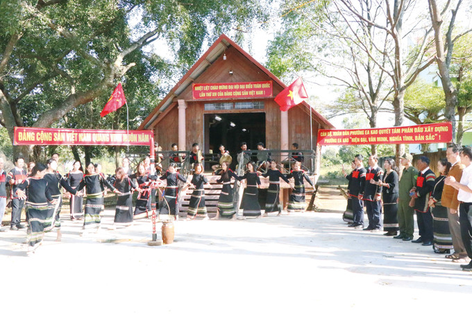 ប្រជាជនភូមិ អា ក យ្ហុង សង្កាត់ បួនម៉ាថួត (ខេត្ត ដាក់ឡាក់) វាយគងឃ្មោះ រាំច្រៀងសម្តែងក្តីរីករាយត្រេកអរ ការជឿទុកចិត្តនិងការរំពឹងទុកចំពោះភាពជោគជ័យនៃមហាសន្និបាតបក្ស ១៤។