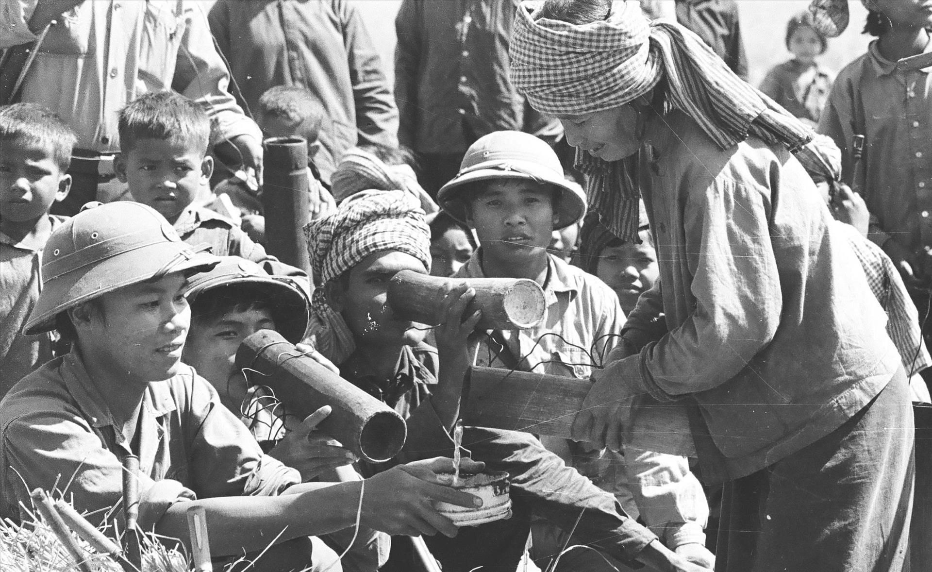 របបខ្មែរក្រហម បាតដៃប្រឡាក់ឈាមជាតិសាសន៍ឯងមួយនេះ បានអនុវត្តនយោបាយការបរទេសដ៏គ្រោះថ្នាក់បំផុត។ ដោយមានការញុះញង់និងគាំទ្រពីសំណាក់ភាគីខាងក្រៅ ក្រុម ប៉ុល ពត-អៀង សារី បានព្យាយាមបំភ្លៃទំនាក់ទំនងកម្ពុជា-វៀតណាម ដោយញុះញង់ឱ្យមានការស្អប់ខ្ពើមជាតិសាសសន៍ មនោគមន៍ប្រឆាំង វៀតណាម និងធ្វើសកម្មភាពយោធារំលោភព្រំដែន រំលោភឯករាជ្យភាពអធិបតេយ្យភាពនិងបូរណភាពទឹកដីវៀតណាម។ ដោយមិនអាចទ្រាំបាននឹងអំពើប្រល័យពូជសាសន៍របស់របបនេះ រណសិរ្សសាមគ្គីសង្គ្រោះជាតិកម្ពុជា ដែលពេលនេះមានឈ្មោះថា “រណសិរ្សសាមគ្គីអភិវឌ្ឍន៍មាតុភូមិកម្ពុជា” បានធ្វើការអំពាវនាវជាបន្ទាន់ដល់ភាគ្គីវៀតណាម ហើយកងទ័ពស្ម័គ្រចិត្តវៀតណាមបានចូលមក ពួតដៃសហការជាមួយកងកម្លាំងប្រដាប់អាវុធនៃរណសិរ្សសាមគ្គីសង្គ្រោះជាតិកម្ពុជា បានប្រយុទ្ធផ្តួលរំលំរបបប្រល័យពូជសាសន៍ ប៉ុល ពត និងទទួលបានជ័យជម្នះនៅថ្ងៃទី ៧ ខែ មករា ឆ្នាំ១៩៧៩។ បន្ទាប់ពីទទួលបានជ័យជម្នះ កងទ័ពស្ម័គ្រចិត្តវៀតណាម បានបន្តជួយបណ្តុះបណ្តាល រហូតដល់កងទ័ពកម្ពុជាមានសមត្ថភាពគ្រប់គ្រាន់ក្នុងការទប់ស្កាត់ការវិលត្រឡប់មកវិញនៃរបបប្រល័យពូជសាសន៍ដែលកម្លាំងសេសសល់បានរត់ទៅលាក់ខ្លួននិងបន្តធ្វើសង្គ្រាមនៅតាមព្រំដែន កម្ពុជា-ថៃ ប្រឆាំងនឹងកងកម្លាំងរដ្ឋាភិបាល ទើបកងទ័ពស្ម័គ្រចិត្តវៀតណាម សម្រេចចិត្តដកទ័ពចេញពីប្រទេសកម្ពុជាទាំងស្រុងនៅ ឆ្នាំ ១៩៨៩។