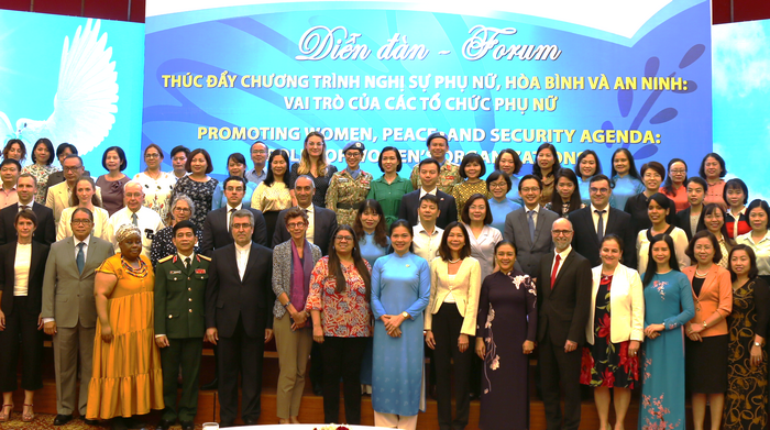 ប្រតិភូចូលរួមវេទិកា "ជំរុញរបៀបវារៈស្ដីពីស្ត្រី សន្តិភាព និងសន្តិសុខ៖ តួនាទីរបស់អង្គការនារី"។ (រូបថត៖ hoilhpn.org.vn)