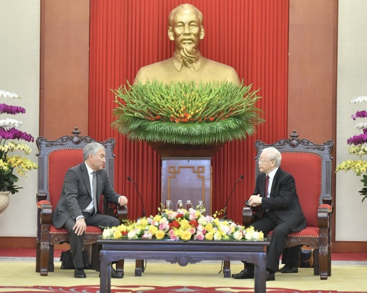 រីឯខ្លួនវិញ ប្រធានសភាឌូម៉ារុស្ស៊ី លោក Vyacheslav Vichtorovich Volodin បានអះអាងថា សភាឌូម៉ារុស្ស៊ីជានិច្ចកាលគាំទ្រការជំរុញទំនាក់ទំនងដៃគូយុទ្ធសាស្ត្រ គ្រប់ជ្រុងជ្រោយជាមួយវៀតណាម; នឹងខិតខំបង្កើនយន្តការសហប្រតិបត្តិការជិតស្និទ្ធ រវាងរដ្ឋសភានៃប្រទេសទាំងពីរ បង្កើនការត្រួតពិនិត្យ និងជំរុញការអនុវត្តកិច្ចព្រម ព្រៀងរវាងថ្នាក់ដឹកនាំជាន់ខ្ពស់នៃប្រទេសទាំងពីរ។ សហព័ន្ធរុស្ស៊ីតែងតែចាត់ទុកវៀត ណាមជាដៃគូអាទិភាពនិងសំខាន់ក្នុងគោលនយោបាយកិច្ចការបរទេសរបស់ខ្លួននៅ តំបន់អាស៊ីប៉ាស៊ីហ្វិក។