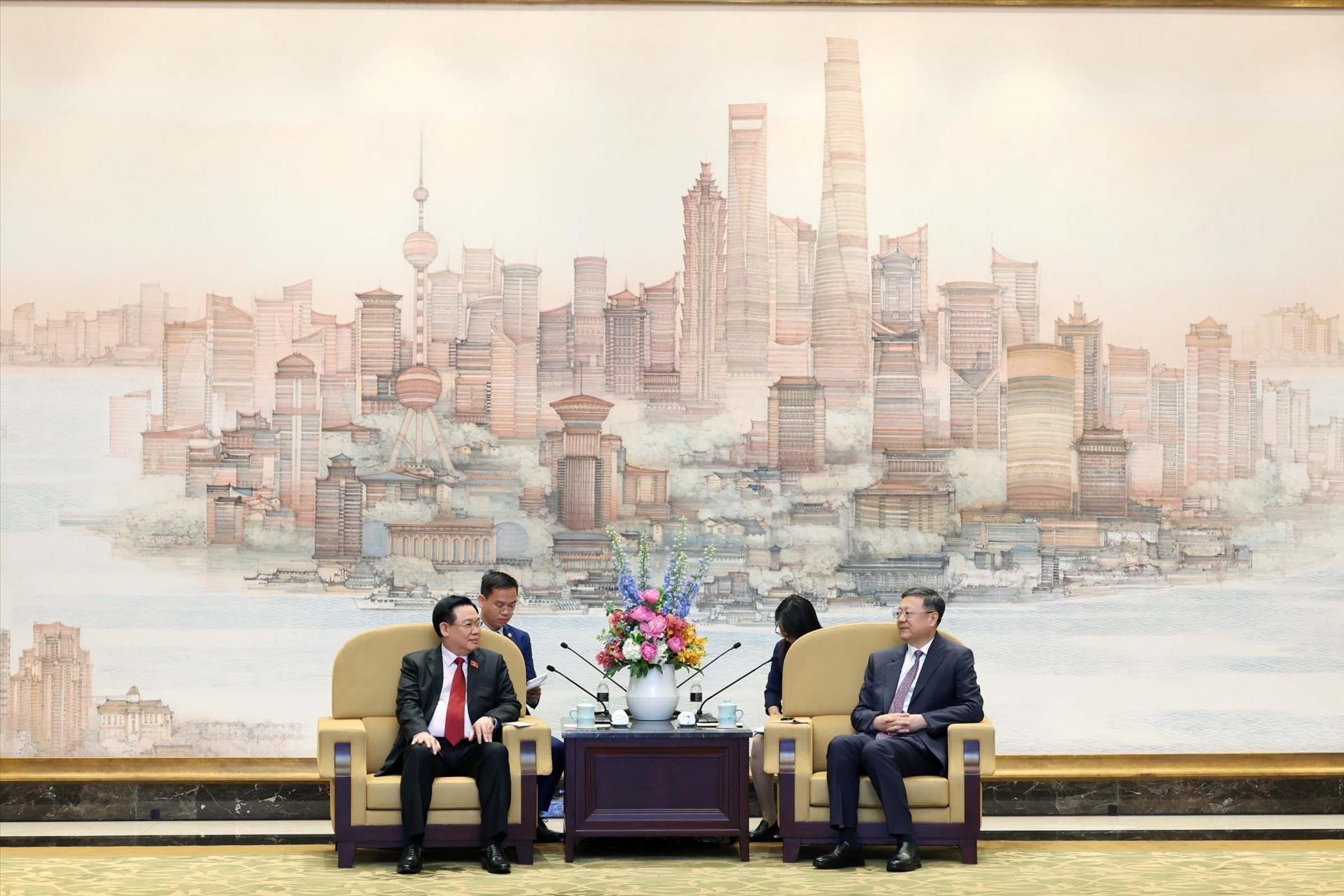 នៅក្នុងជំនួបនេះ ប្រធានរដ្ឋសភាវៀតណាម លោក Vuong Dinh Hue បានអះអាងនូវគោលនយោបាយដ៏ខ្ជាប់ខ្ជួនរបស់វៀតណាម ដែលជានិច្ចកាលគោរព និងត្រៀមខ្លួនជាស្រេចដើម្បីគាំទ្រ និងបង្កើតលក្ខខណ្ឌបង្កើនទំនាក់ទំនងមិត្តភាព និងកិច្ចសហប្រតិបត្តិការរវាងមូលដ្ឋាននានារបស់វៀតណាម និងចិន ជាពិសេសគឺតំបន់ដែលមានទំនាក់ទំនងជាប្រពៃណី និងសក្ដានុពលដ៏សម្បូរបែបសម្រាប់កិច្ចសហប្រតិបត្តិការ ដូចជាទីក្រុងសៀងហៃ; បានសង្កត់ធ្ងន់ថា កំណែទម្រង់ជាច្រើនរបស់សៀងហៃ បើកទូលាយ គោលនយោបាយសាកល្បង... មិនត្រឹមតែរួមចំណែកផ្ទាល់ដល់ប្រទេសចិនប៉ុណ្ណោះទេ ប៉ុន្តែថែមទាំងមានតម្លៃយោងមានប្រយោជន៍សម្រាប់ប្រទេសជាច្រើន ក្នុងនោះមានវៀតណាមផងដែរ។