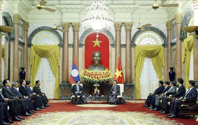 នារសៀលថ្ងៃនេះ (៦ មករា) នៅវិមានប្រធានរដ្ឋ នៅទីក្រុងហាណូយ ប្រធានរដ្ឋលោក Vo Van Thuong បានអញ្ជើញទទួលជួបនាយករដ្ឋមន្ត្រីឡាវលោក Sonexay Siphandone ដែលកំពុងបំពេញទស្សនកិច្ចជាផ្លូវការនៅវៀតណាម។ នៅទីនេះ ប្រធានរដ្ឋលោក Vo Van Thuong បានអះអាងថា បក្សនិងរដ្ឋវៀតណាមតែងតែផ្តល់អាទិភាពខ្ពស់បំផុតចំពោះទំនាក់ទំនងមិត្តភាពដ៏មហិមា សាមគ្គីភាពពិសេស និងកិច្ចសហប្រតិបត្តិការលើគ្រប់វិស័យរវាងវៀតណាម និងឡាវ។ ថ្នាក់ដឹកនាំទាំងពីររូបបានឯកភាពគ្នាបន្តរក្សាដំណើរទស្សនកិច្ចជាន់ខ្ពស់និងគ្រប់កម្រិត; អនុវត្តន៍ប្រកបដោយប្រសិទ្ធភាពនូវកិច្ចព្រមព្រៀងសំខាន់ៗរវាងបក្សទាំងពីរ និងប្រទេសទាំងពីរ; ជំរុញកិច្ចសហប្រតិបត្តិការលើវិស័យសន្តិសុខ ការពារជាតិ និងការទូត; បន្តផ្តោតសំខាន់លើការអប់រំ និងឃោសនា លើកកំពស់ការយល់ដឹងរបស់ប្រជាជននៃប្រទេសទាំងពីរ ជាពិសេសយុវជនអំពីប្រពៃណីប្រវត្តិសាស្ត្រដ៏ស្និទ្ធស្នាល ស្មោះត្រង់ និងសមិទ្ធិផលនៃទំនាក់ទំនងសាមគ្គីភាពពិសេសវៀតណាម និងឡាវ។ ទន្ទឹមនឹងនោះ បន្តជំរុញកិច្ចសហប្រតិបត្តិការលើវិស័យផ្សេងៗទៀត ដូចជាការអប់រំ បណ្តុះបណ្តាល ទេសចរណ៍ សេដ្ឋកិច្ច ពាណិជ្ជកម្ម និងការវិនិយោគ។ ប្រធានរដ្ឋ លោក Vo Van Thuong បានសង្កត់ធ្ងន់ថា ភាគីទាំងពីរចាំបាច់ត្រូវបន្តជំរុញទំនាក់ទំនងនយោបាយដ៏ល្អពិសេស សម្របសម្រួលយ៉ាងជិតស្និទ្ធ ដើម្បីដាក់ពង្រាយផែនការ និងគម្រោងសហប្រតិបត្តិការប្រកបដោយប្រសិទ្ធភាព ព្រមទាំងស្នើឡាវបន្តយកចិត្តទុកដាក់ និងបង្កលក្ខណៈងាយស្រួលសម្រាប់សហគមន៍ជនវៀតណាមនៅឡាវមានស្ថិរភាព និងអភិវឌ្ឍន៍។