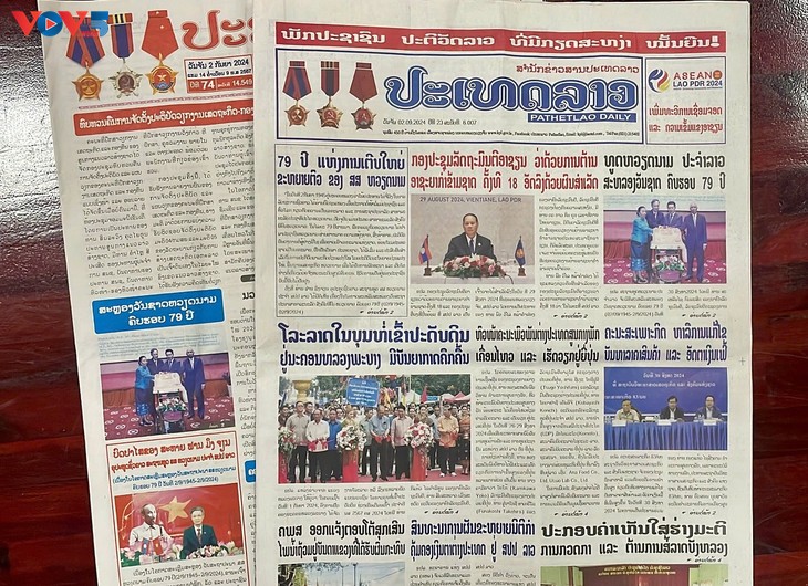 នៅទំព័រមុខរបស់កាសែត PathetLao ចុះថ្ងៃទី ២ កញ្ញា បានចុះផ្សាយ អត្ថបទក្រោមចំណងជើងថា “៧៩ឆ្នាំនៃការអភិវឌ្ឍរបស់សាធារណៈរដ្ឋសង្គមនិយមវៀតណាម”។ (រូបថត៖ VOV Vientiane)