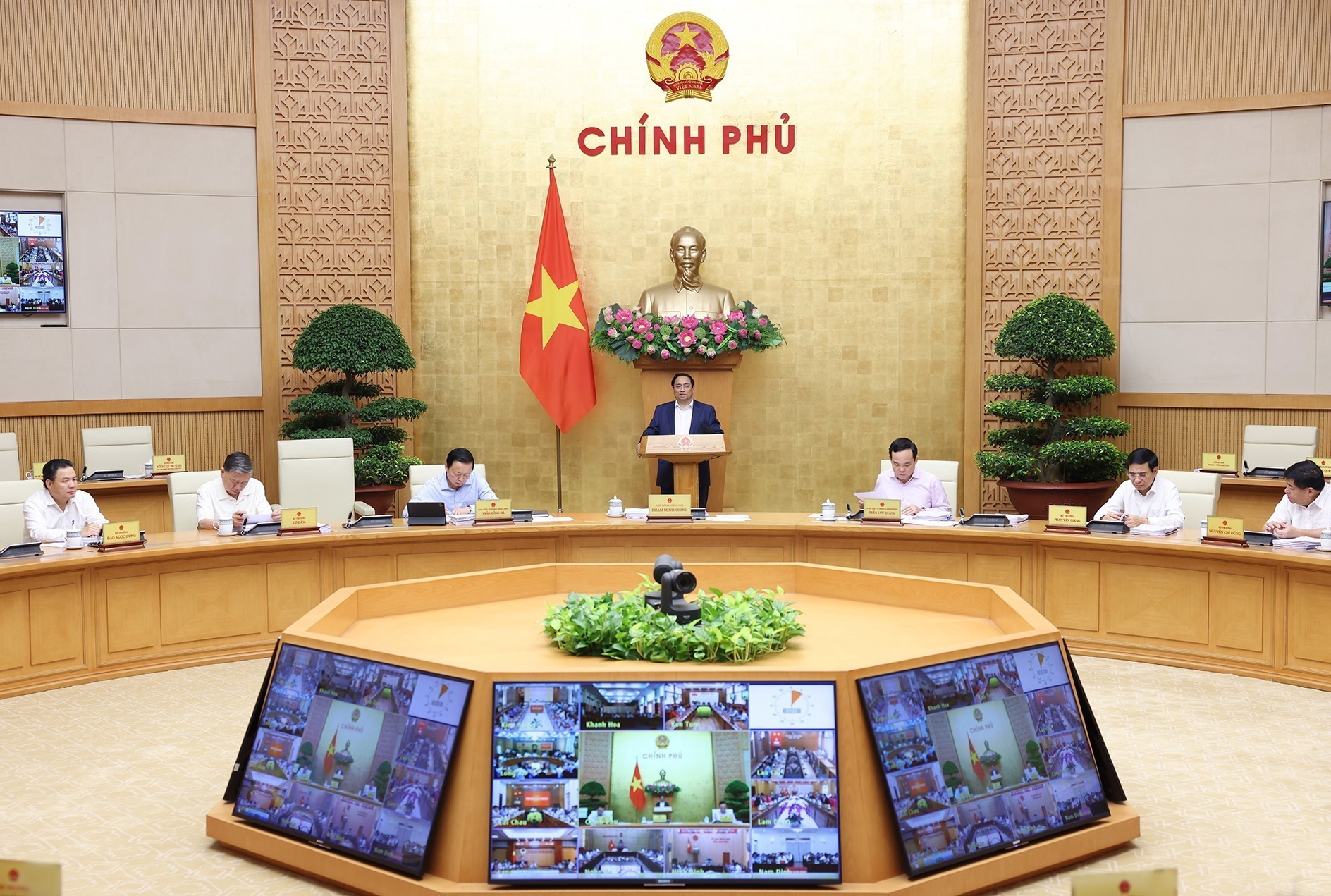 នាយករដ្ឋមន្ត្រីវៀតណាមលោក Pham Minh Chinh ដឹកនាំសន្និសីទអនឡាញរបស់រដ្ឋាភិបាលជាមួយមូលដ្ឋានទាំង ៦៣។ (រូបថត៖ VNA)