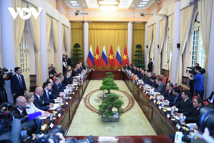 នៅក្នុងកិច្ចពិភាក្សា ថ្នាក់ដឹកនាំទាំងពីរបានឯកភាពគ្នាលើទិសដៅ និងវិធានការសំខាន់ៗ ដើម្បីបង្កើនបន្ថែមទៀតនូវភាពជាដៃគូ និងយុទ្ធសាស្ត្រគ្រប់ជ្រុងជ្រោយរវាងវៀតណាម និងសហព័ន្ធរុស្ស៊ី។ ភាគីទាំងពីរបានឯកភាពពង្រឹងទំនាក់ទំនងដោយឈរលើមូលដ្ឋាន នៃការជឿទុកចិត្តគ្នាទៅវិញទៅមក មានផលប្រយោជន៍ទៅវិញទៅមក និងមិនជ្រៀតជ្រែកក្នុងកិច្ចការផ្ទៃក្នុងរបស់គ្នាទៅវិញទៅមក ដោយឈរលើគោលការណ៍ជាមូលដ្ឋាននៃធម្មនុញ្ញអង្គការសហប្រជាជាតិ និងច្បាប់អន្តរជាតិ។