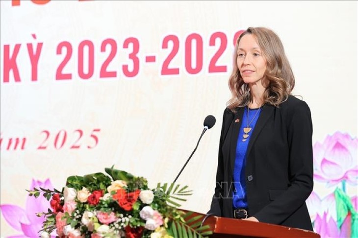 លោកស្រី Courtney Beale ឯកអគ្គរដ្ឋទូតរងនៃបេសកកម្មការទូតសហរដ្ឋអាមេរិកប្រចាំនៅវៀតណាម ថ្លែងនៅក្នុងព្រឹត្តិការណ៍។ រូបថត៖ Le Dong/TTXVN
