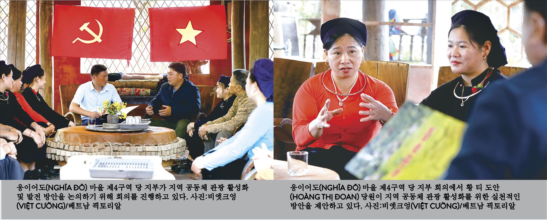 농업이 안정 궤도에 오른 이후, 응이아도의 다음 과제는 관광 발전이다. ‘문화와 관광을 자산으로 전환한다’는 관점 아래, 전통 양식을 복원한 타이족 고상가옥 30여 채가 공동체 관광 홈스테이로 운영되고 있다.