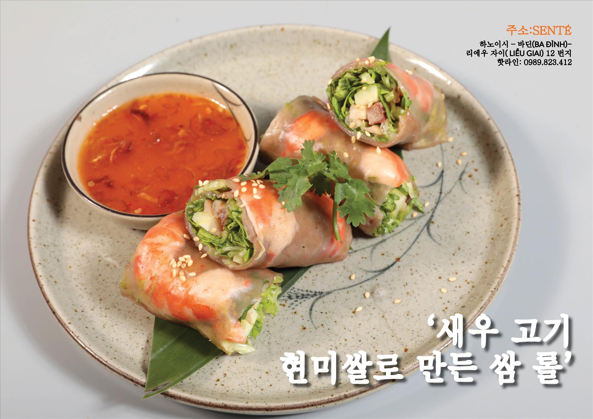 하노이 음식이 맛의 교향곡이라면, 퍼 꾸온(Phở cuốn, 쌀국수 롤)은 가장 경쾌하고 부드러운 음표라 할 수 있을 것이다. 연꽃에서 영감을 받은 음식 철학과 건강에 좋은 재료를 바탕으로, Senté 레스토랑은 전통의 아름다움을 고스란히 간직하면서 영양 가치를 한 단계 높인 완전히 새로운 버전의 퍼 꾸온, 바로 “새우 고기 현미쌀로 만든 쌈 롤”를 창조해냈다.